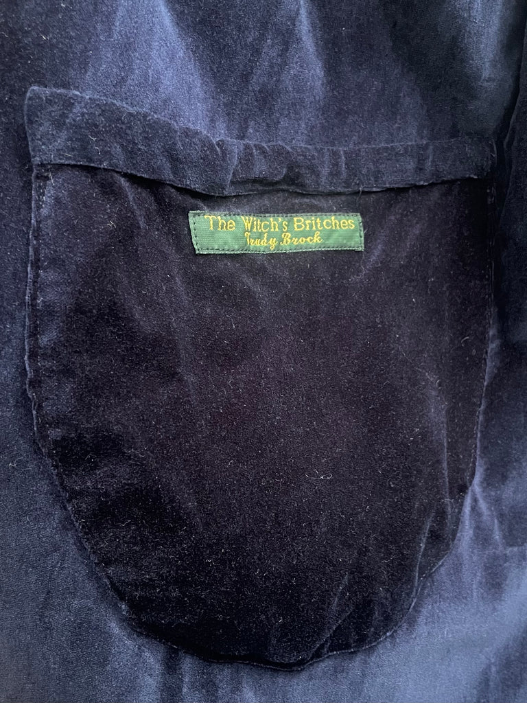 Midnight blue cotton velvet women's mid sleeved dress. Measures 46” at bust and 48” long. Pleats to front and back of skirt. Front pocket. Wash cool and gently.